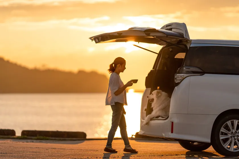 夕陽が綺麗な日は愛犬と一緒に眺めに行って、のんびりと過ごしています。