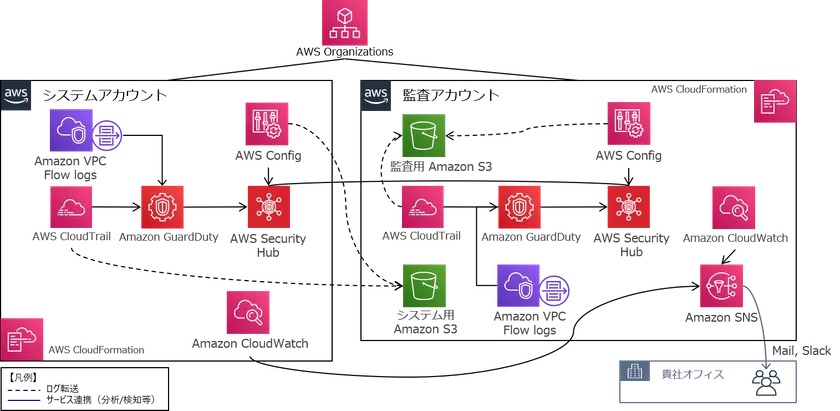 ・AWS Security Hub, AWS ConfigおよびConfig Rules, AWS CloudTrail, Amazon GuardDuty, Amazon Detective等の導入テンプレート