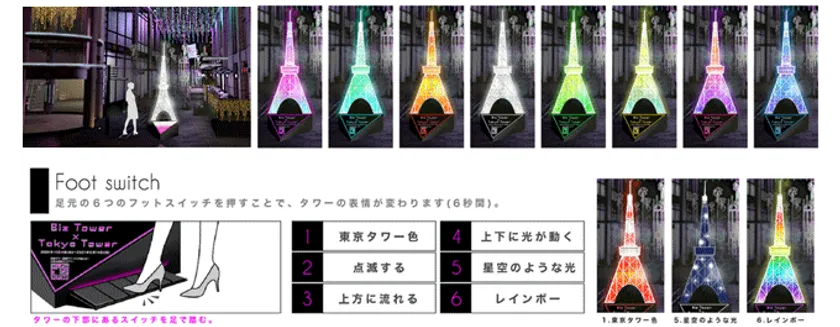 今年は赤坂Bizタワーに様々な色合いに輝く東京“ミニ”タワー型のイルミネーションオブジェが出現!