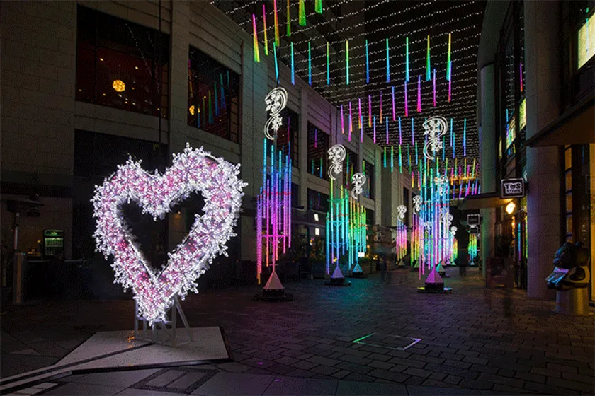 今年のイルミネーションデザインも、例年に引き続き、赤坂サカスの顔であるTBSテレビの音楽番組等を手掛ける美術チームが担当。仲通りのイルミネーションには、約1670万色もの光が表現可能なLED「バーティカルチューブ」を採用し、無限な可能性を秘めた様々な色合いで、赤坂サカスの世界観を演出します。