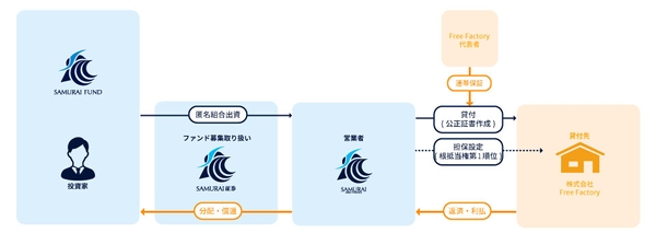このファンドは、営業者であるSAMURAI ASSET FINANCE株式会社が株式会社Free Factory(以下、「本貸付先」といいます。)に対して実行した2,900万円の貸付(以下、「本件貸付」)に対するバックファイナンスをおこないます。