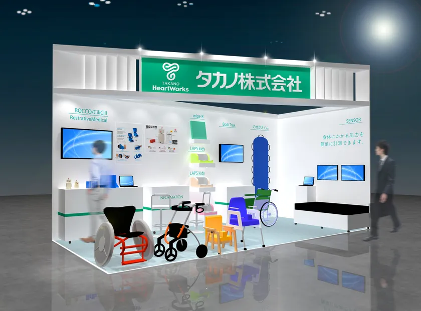 当展示会には、新製品の速度制御機能付き歩行車「U WalkerII(ユー ウォーカー ツー)」、体圧分布測定装置「BodiTrak2 Lite(ボディートラック・ツー・ライト)」、小児向け座位保持装置「バンビーナposi(ポジ)」の3つの新製品を展示会に初出展します。