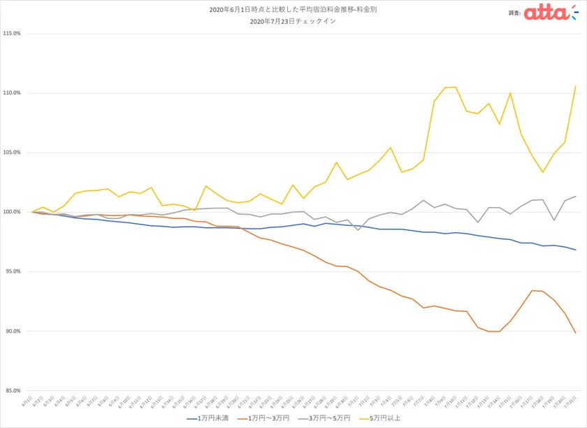 【2020年6月1日時点と比較した平均宿泊料金推移】