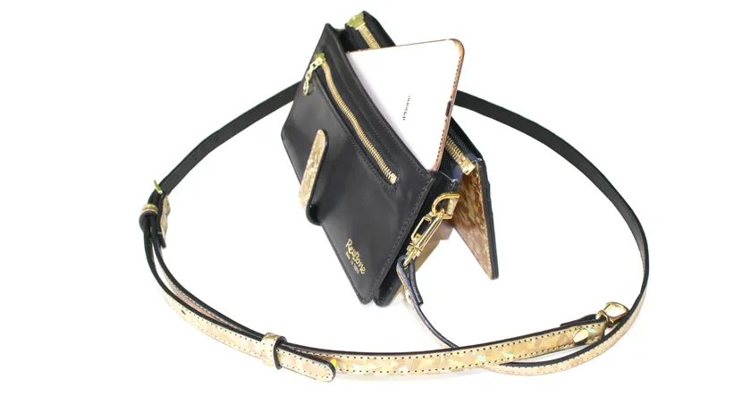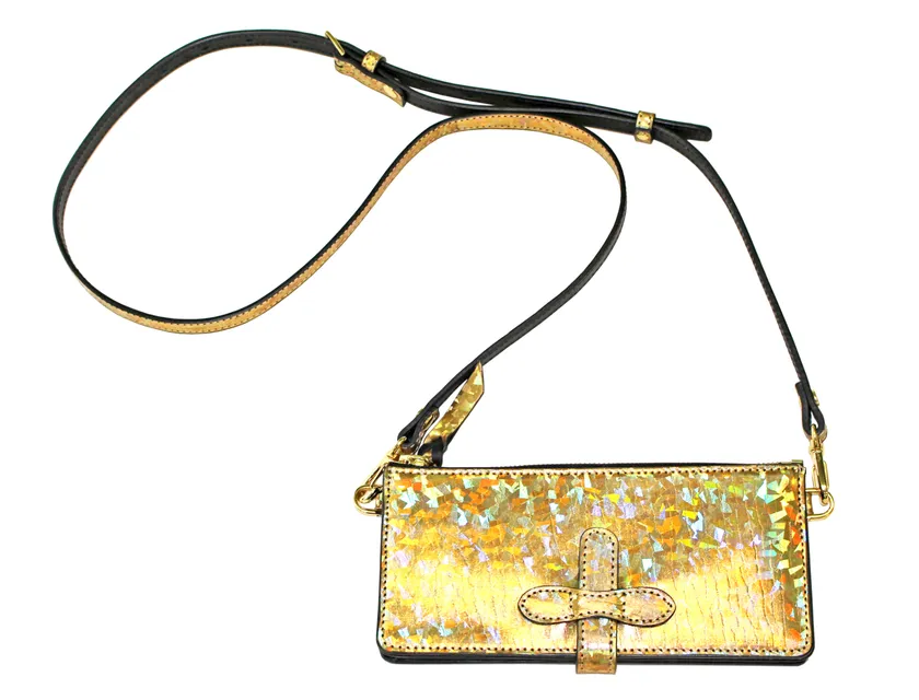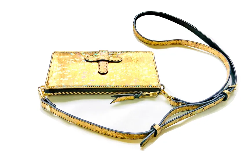 ■オプションのショルダーベルトを付けてパーティーバッグとしても活躍が期待される「リボーンウォレット・改/クリスタルゴールド」とは