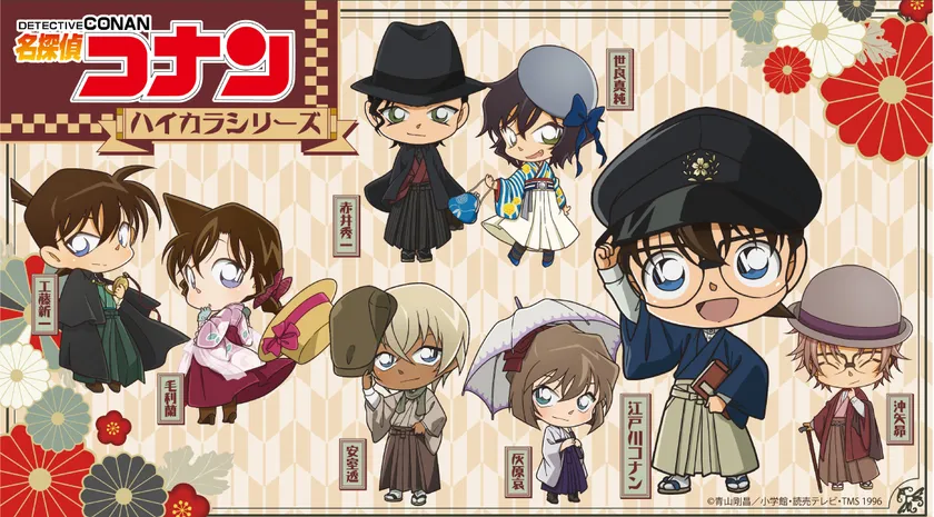TVアニメ「名探偵コナン」のキャラクターたちが、ハイカラ風世界へタイムスリップ?!「ハイカラシリーズ」デフォルメ商品が新登場!江戸川コナン/工藤新一/毛利蘭/灰原哀/赤井秀一/世良真純/沖矢昴/安室透の全8キャラがラインナップ。