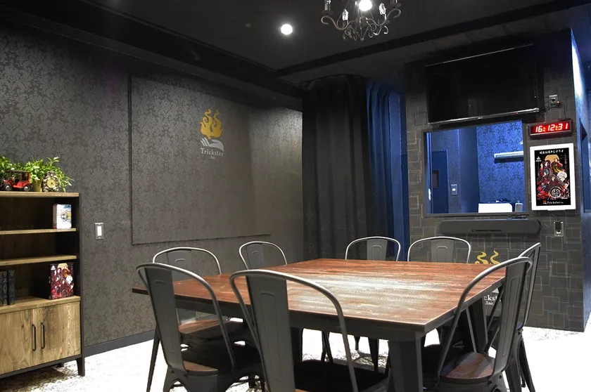 「平穏と緊張」が同居する白と黒を基調としたアンティークなデザインでまとめられた空間に、リッチな演出に対応するモニターや音響設備を備えた「トリックスター」は、昨年の3月よりディアシュピールが仕掛ける体験型ゲーム「マーダーミステリー」を遊ぶことに特化した専門店です。