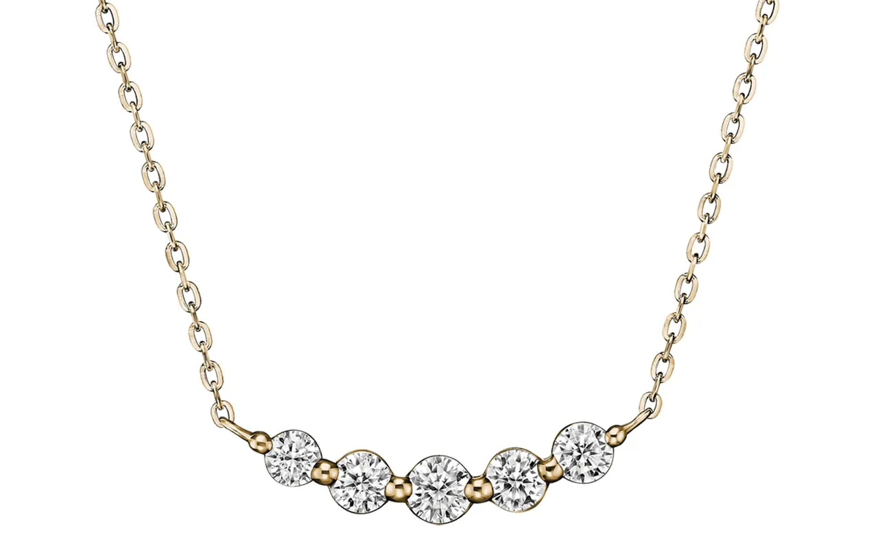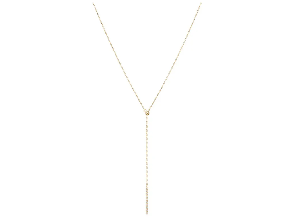 首もとをスラリと魅せるデザイン。上品なメレダイヤモンドの輝きと角度も自在なY字シルエットを楽しんで。