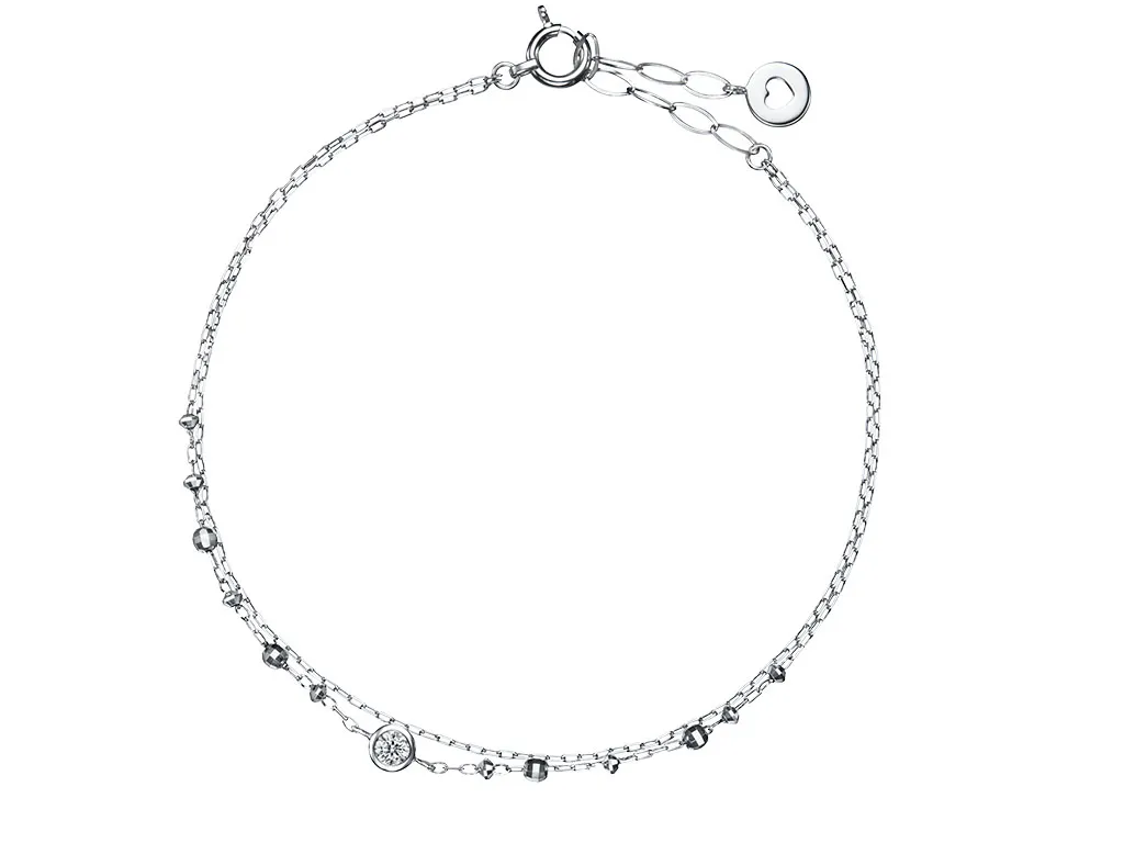 二重の繊細なチェーンに上質のメレダイヤをちりばめ、夜空をきらびやかに彩る天の川をイメージしたブレスレット。ちょっと贅沢で華のあるおしゃれを楽しみたい日にも。