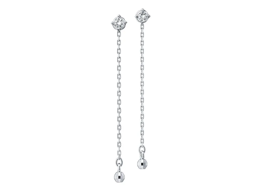 シンプルな4本爪のダイヤモンドとチェーンとの組み合わせがお洒落なピアス。
