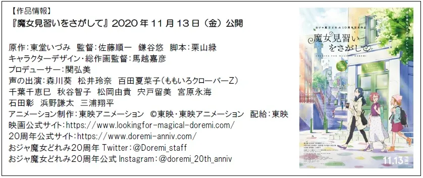 近鉄では、人気アニメ「おジャ魔女どれみ」20周年記念作品映画『魔女見習いをさがして』の公開延期に伴い、映画とタイアップしたコラボレーション企画の一部延期をお知らせしましたが、2020年11月13日(金)の映画公開決定を受けて、延期していた特製入場券の発売および等身大キャラクターパネルの展示を実施します。