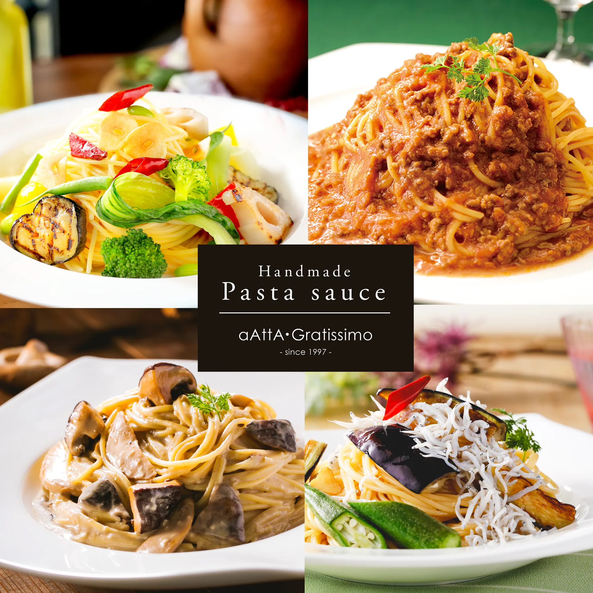 aAttA・Gratissimo(アッタ・グラテシモ)はホテル出身のシェフが手掛ける、イタリアンを中心とした洋風惣菜のお店です。低温急速冷凍(フローズン)でパックした、作りたてそのままのお料理(デリカ)に、「新鮮なおいしさ+驚きと感動」を込めて皆様のお手元までお届けいたします。ご家庭での調理方法はいたって簡単!パスタソースは凍った袋のまま湯煎してお皿に盛り付けるだけ。忙しい時に、困った時に、いつでもご自宅の冷凍庫に『あったらいいな』『あったら便利』『あったら嬉しい』そんなささやかな存在になりたいとの願いからaAttA(アッタ)と名付けました。