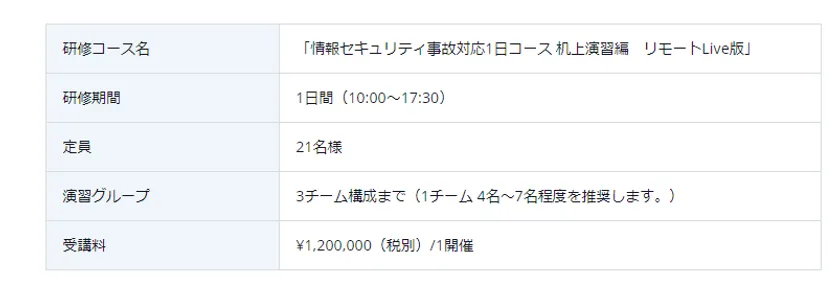 「情報セキュリティ事故対応1日コース 机上演習編 リモートLive版」
