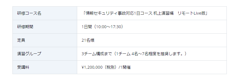 https://www.lac.co.jp/service/education/incident_response_intensive_live.html