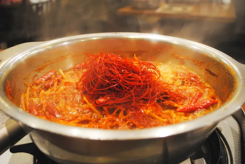2. 独自の旨辛鍋をお楽しみください。10種類以上の香辛料と20種類以上の材料で半年以上ねかせたオリジナルたれの相性は抜群です