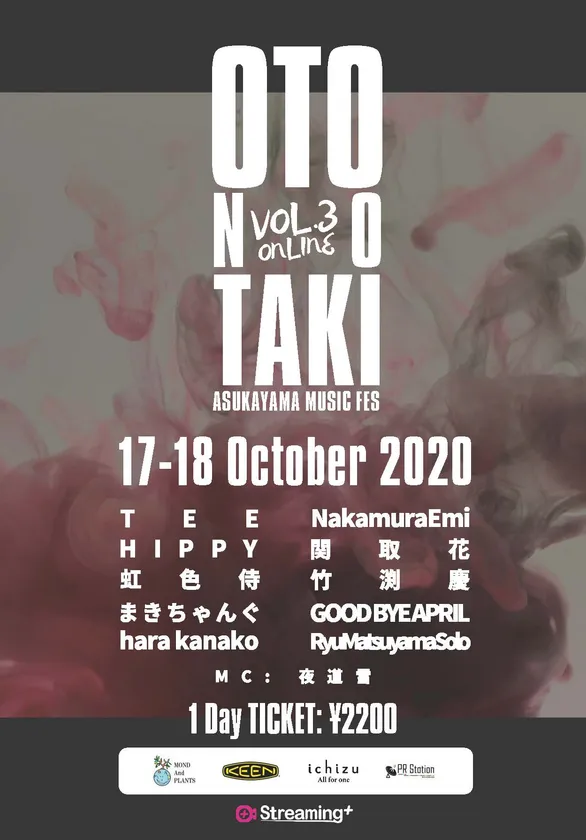 音の滝実行委員会は「ASUKAYAMA MUSIC Fes 音の滝 vol.3」を2020年10月17日(土)、18日(日)にオンラインで開催します。