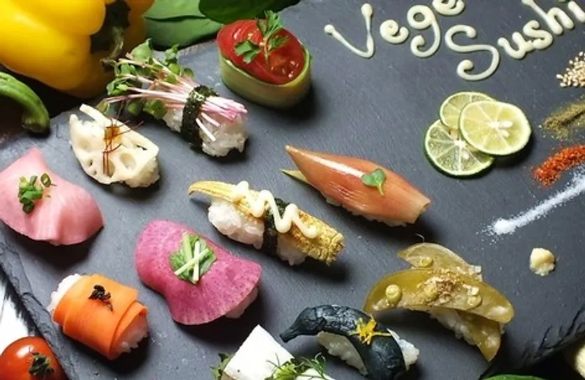 野菜寿司は全100種類以上から選べる人気の食べ飲み放題コースで注文が可能となっております。コースは3500円、4000円、4500円の3種類があり、どのコースでもお楽しみいただけます。