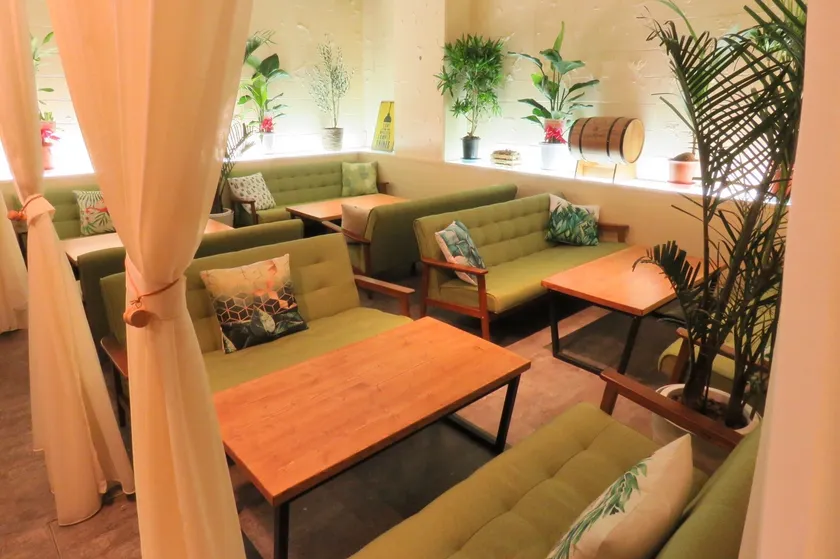 落ち着いた雰囲気のデザイナーズバル空間で、個室も完備もしており周りを気にせずゆったり寛げるソファー席と、気軽に楽しみたい方に最適なテーブル席やカウンター席も完備しており、ゆったりとした広い店内を用いてウエディングパーティーも可能です。