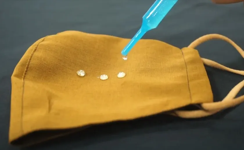 (2) 撥油機能の効果で生地と油汚れの間に水や洗剤などが入り込み、油汚れを浮かせて落としやすくします。