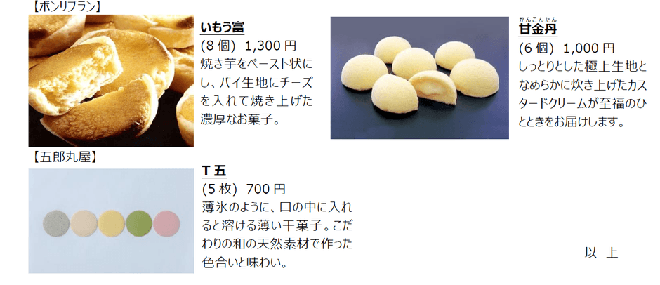 コロナ禍により影響を受けた生産者の支援を目的に、5月・8月に老舗蒲鉾メーカー「河内屋」を始めとする富山県の銘産品を特別販売いたしました。富山県フェア第3弾の今回は、お土産として人気のお菓子や練り物計10品を特別販売いたします。