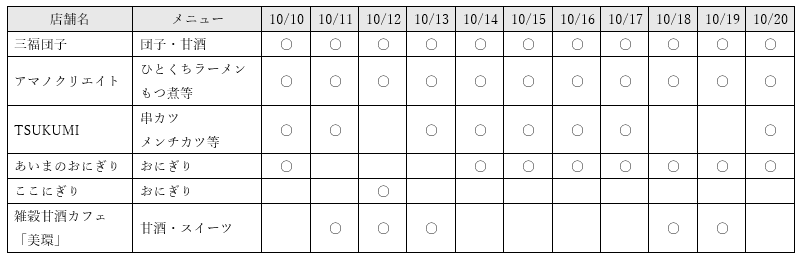 【松原】 大福・幸福・裕福の三つの福が一体になった縁起の良い「三福団子」をはじめ、一口ラーメンやもつ煮、串カツ各種、おにぎりやスイーツ、甘酒など多彩な味わいが揃います。