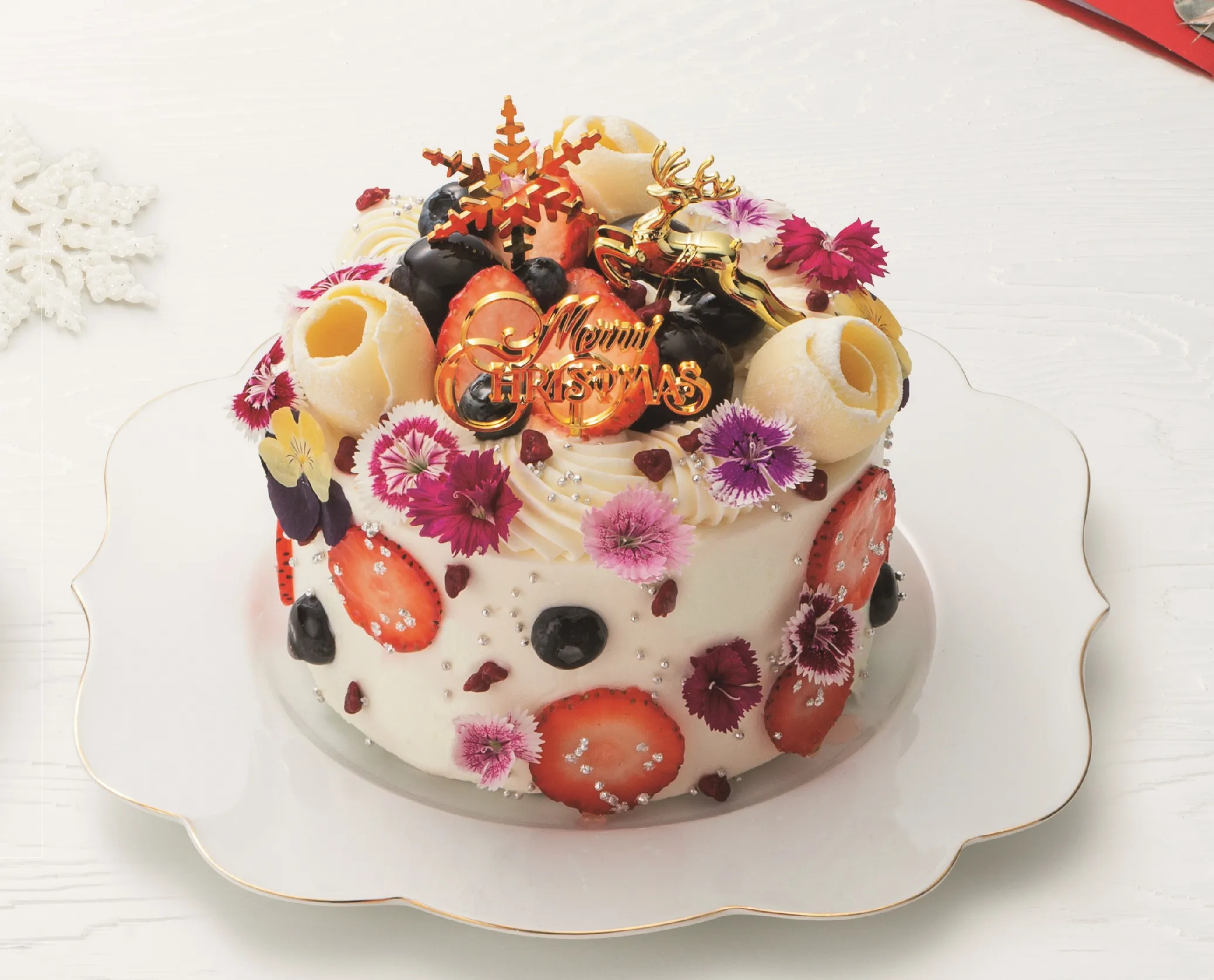 聖夜のテーブルを華やかに彩る、お花の妖精をイメージしたクリスマスケーキ。