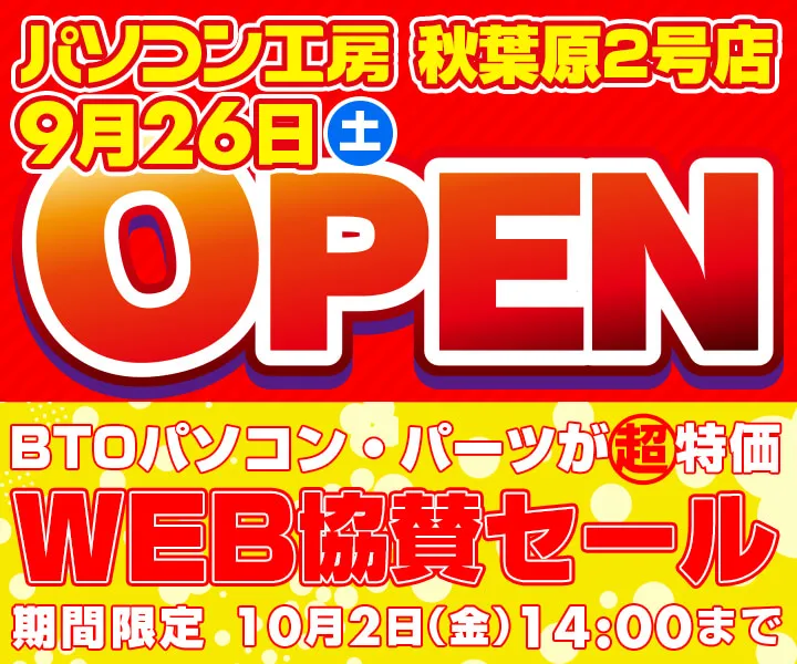 『パソコン工房 秋葉原2号店 9月26日(土)オープン WEB協賛セール』