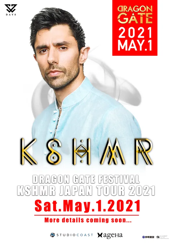 2020年4月に開催予定、延期となっていた「DRAGON GATE FESTIVAL KSHMR JAPAN TOUR」が、2021年5月1日(土)に新木場 STUDIO COAST/ageHaにて同日開催が決定いたしました!昼と夜の2回公演を予定しております。(夜の公演は、未成年入場不可となりますのでご注意ください。)