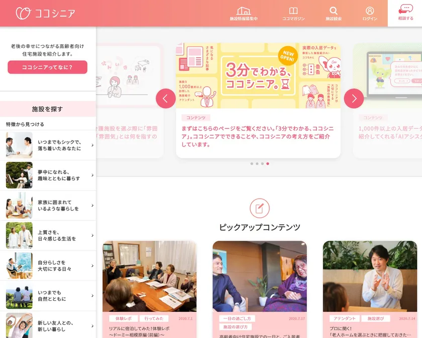 コンセプトは「老後の幸せ」 「AI」×「人」ハイブリット型高齢者向け 住宅施設紹介サイト「ココシニア」オープン