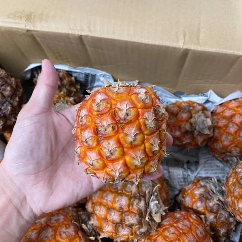 故郷沖縄で収穫された小さなピーチパインの廃棄ゼロを目指し故郷に貢献したい!昨年はピーチパインのままで顧客様のみに販売しましたが、食べごろ時期が短く販売できる期間が限られており宣伝もお届け作業も大変でした。今年は新型コロナの影響でお客様への宣伝や配達する為にお会いする事は難しく、瓶詰めの加工品にして販売する事となりました。