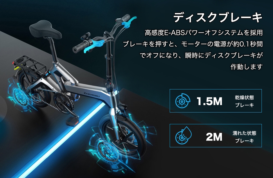 ディスクブレーキは前後輪に装着。しっかり【止まれる】設計です。