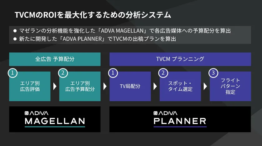 今後、マゼランの累計導入400社を2022年末までに目指し、その実績をベースに、アドバの導入を拡大してまいります。また、2020年中を目処に、アドバのサービスラインナップを拡充し、テレビCMのクリエイティブ制作をデータサイエンスにより支援する「ADVA CREATOR」を提供開始する予定です。