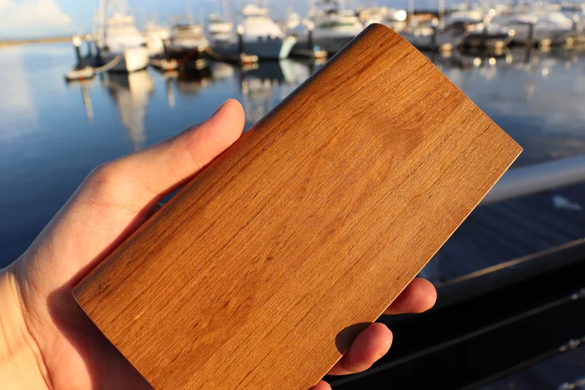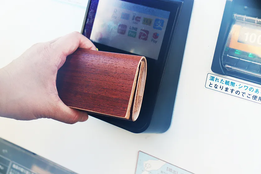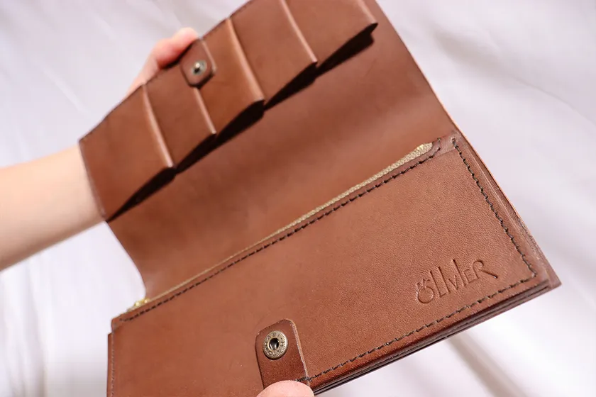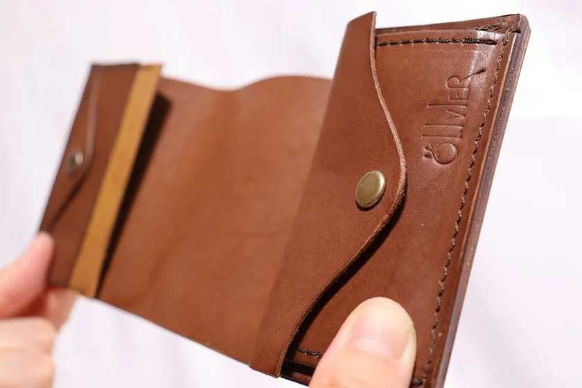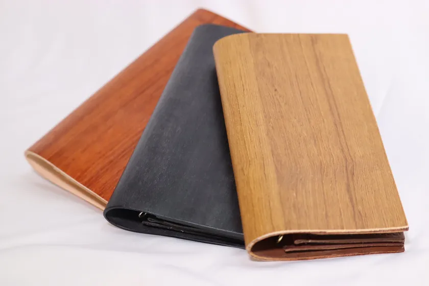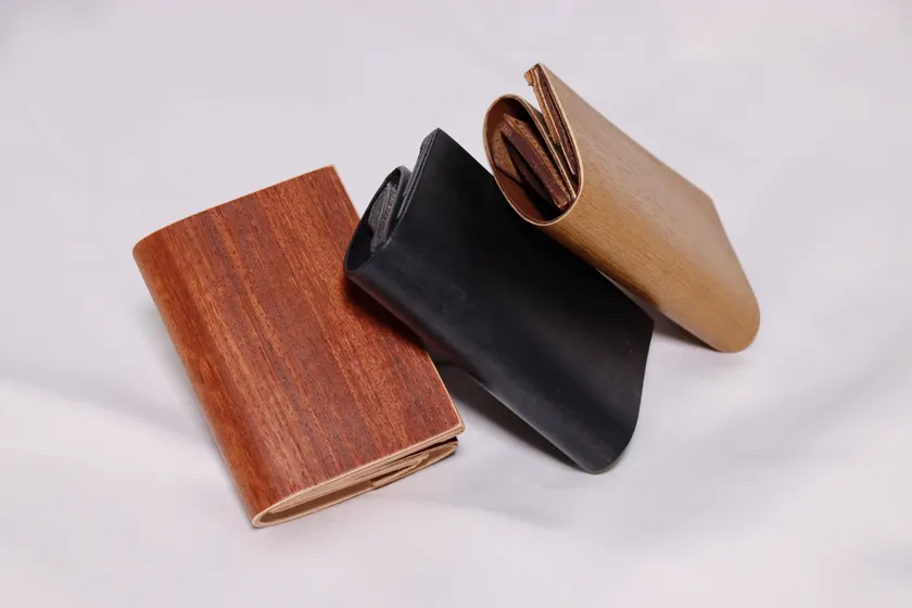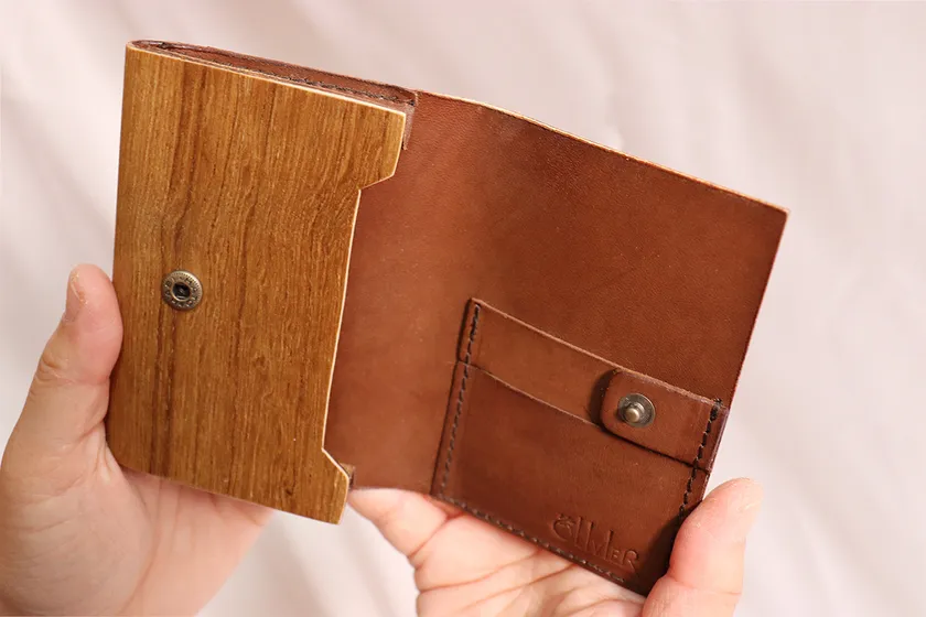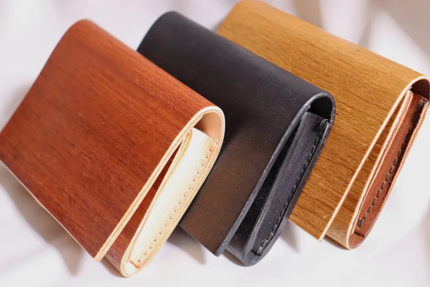 木材は柔軟性の出る加工をしており柔らかさを持ちながら、木材の強度もあり革財布の芯材としての役割も果たす作りになっており、美しさを長く持続させる型崩れ防止に効果があります。