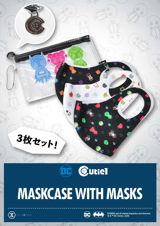 商品はマスクは3枚+ケースのセット。3枚のうち1枚は「キューティ1 オリジナルキャラクター」が描かれた特別仕様のマスクになります。