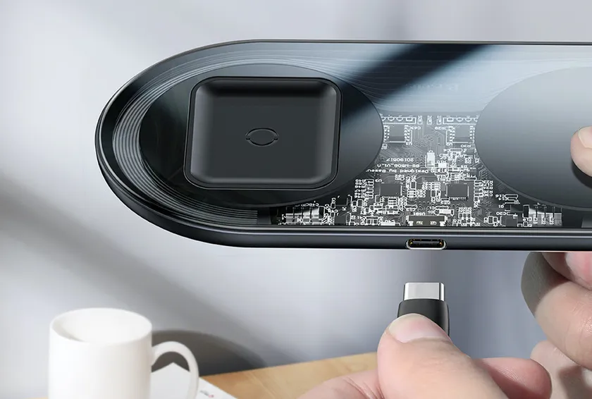 『ツイン・チャージャー』は20Wのハイパワー出力で、スマートフォンやイヤフォンなど2台のデバイスを同時に急速充電。ワイヤレスなので毎回デバイスにケーブルを差す手間がかかりません。