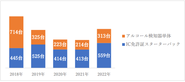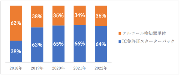 【前年より146件増加】アルコール検知システム導入企業のうち6割がはじめからIC運転免許証スターターパックを選択しています。