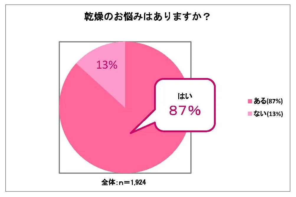 乾燥の悩みがある方は87%!目元、口元、頬に集中