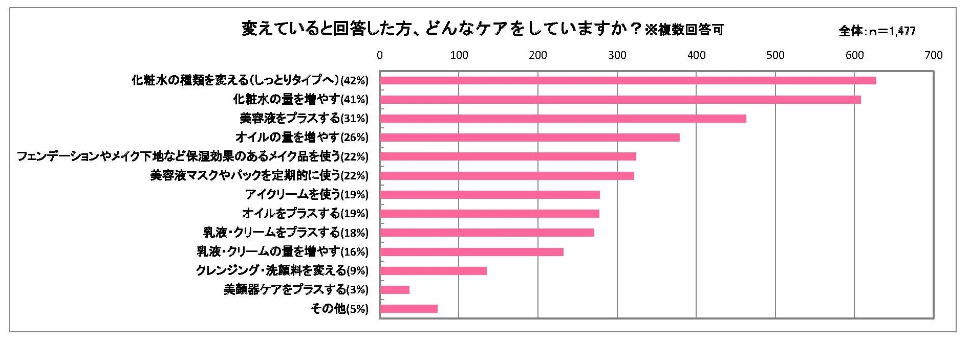 法かを聞いたところ、1位「化粧水の種類を変える(しっとりタイプへ)」42%、