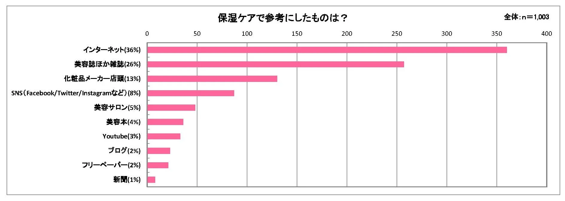 参考にしたか聞いたところ1位「インターネット」、2位「美容誌ほか雑誌」、