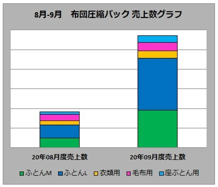 8月-9月布団圧縮パック売上数グラフ