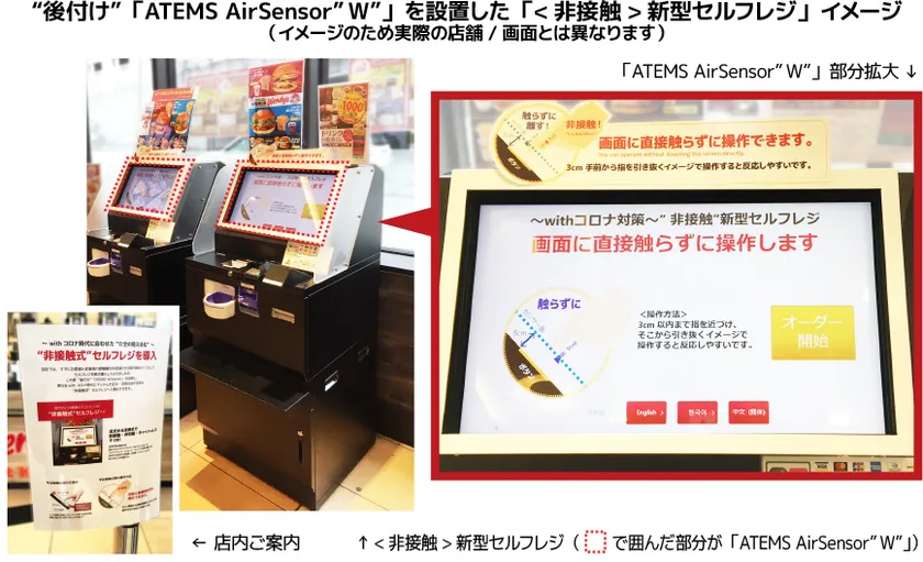 “後付け”「ATEMS AirSensor“W”」を設置した「<非接触>新型セルフレジ」イメージ