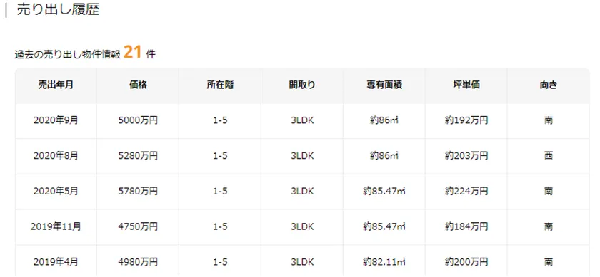 ※5 当社ホームページで掲載していない物件も含む売り出し事例です。価格は売り出し年月時点での売り出し価格であり、成約価格ではありません。