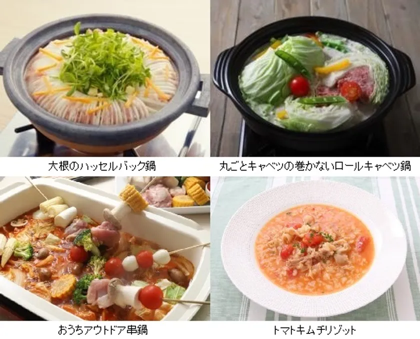 今回開発したメニューのテーマは「野菜丸ごと使い切り鍋」「余った野菜の使い切り鍋」「余ったご飯や麺を有効活用」。余らせがち、眠らせがちな食材や普段捨ててしまう部位を活用する、おいしくて簡単な「もったい鍋」レシピで、家庭での食品ロス削減を推進します。