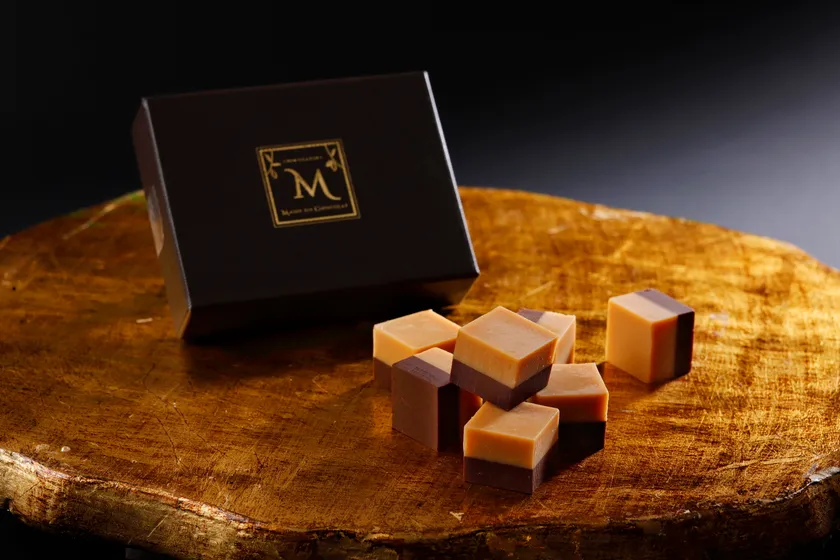 ガナッシュの土台には米粉の薄焼きクッキーを敷き詰め、濃厚なガナッシュと一緒にすることで濃厚ながらも、くどくない絶妙なバランスに仕上がっています。