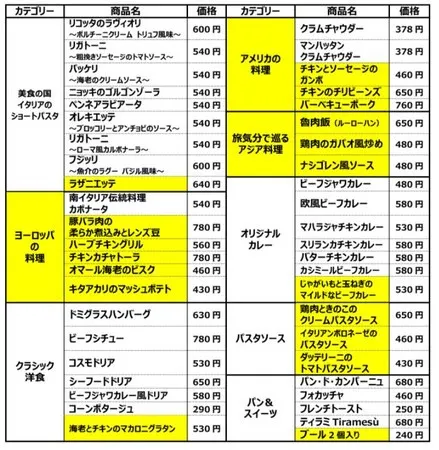 【全商品ラインアップ】※価格は税込み、 黄色欄は新カテゴリー及び新商品