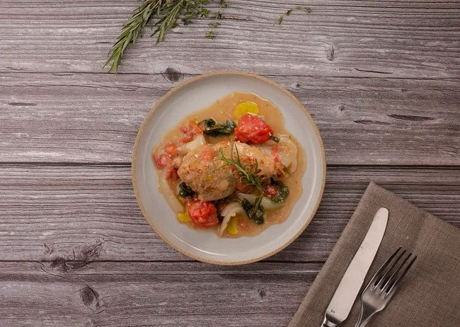 鶏もも肉をアンチョビやビネガーで軽く煮込みました。