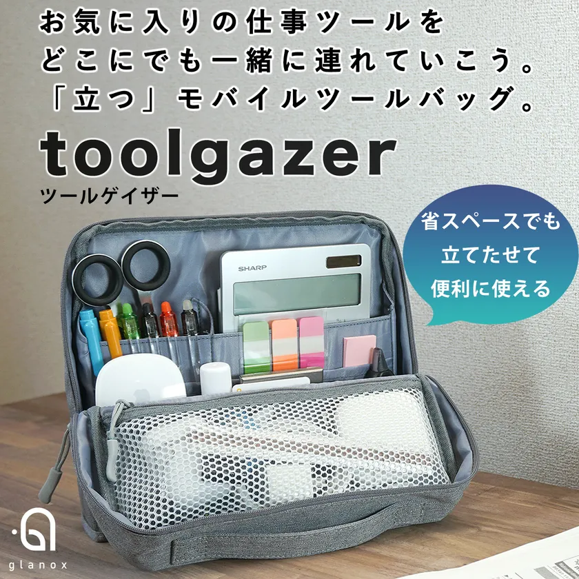 省スペースでも「立つ」モバイルツールバッグ『ToolGazer』発売 お気に入りの仕事ツールをスマートにまとめて どこにでも連れていく!