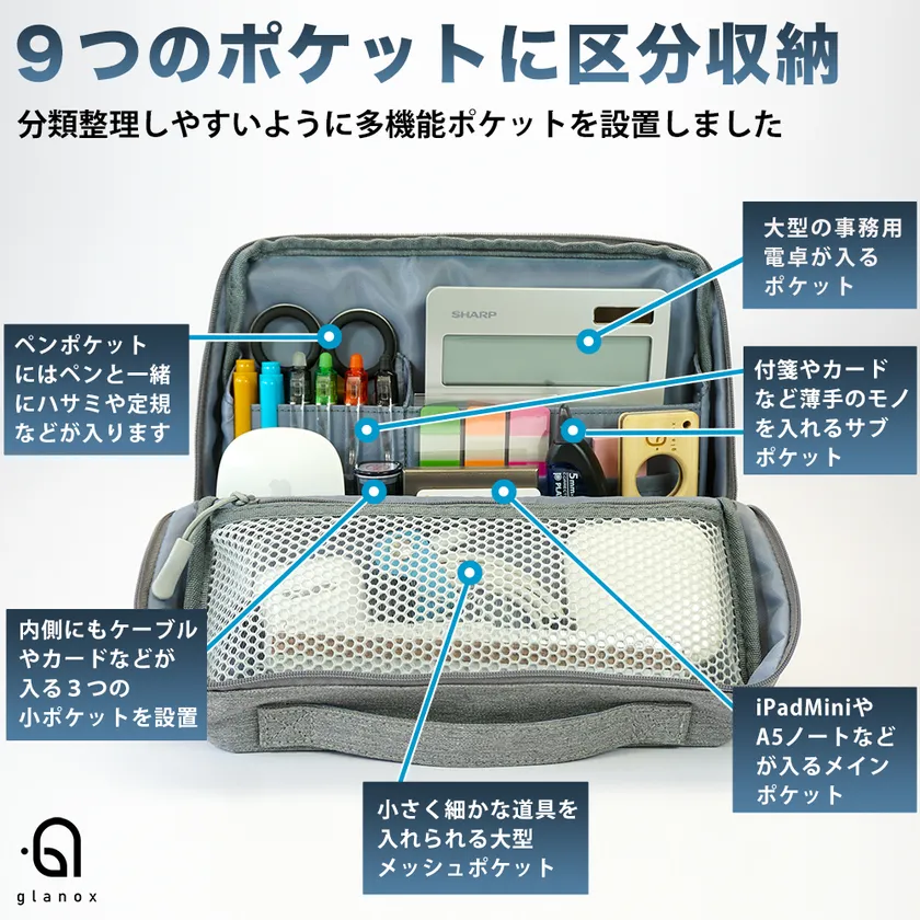 当社調べによると、学生向けの筆箱の延長線上のような文房具ケースは数多くありますが、ビジネスマンに向けた本格的なツールバッグがほとんど無いことがわかりました。