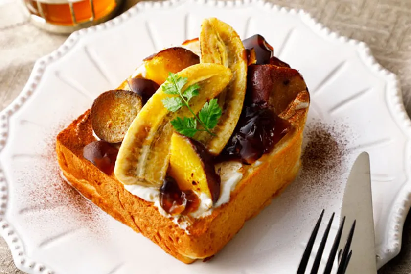 ティラミスをトーストにアレンジ!コーヒーゼリーを使って簡単に作ります。バナナを豪快にのせてインパクトを。レモン風味のさつまいもをのせることですっきりと甘すぎない大人の味わいに。