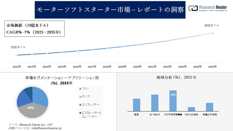 Research Nester Inc.(本社:東京都台東区)は、「モーターソフトスターター市場」に関する調査を実施し、2023 ― 2035 年の間の予測期間を調査しています。