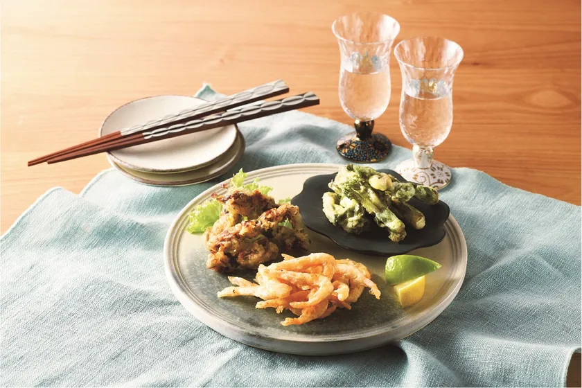 下ごしらえに奥能登の揚げ浜塩を使っています。きりっとクリアな冷酒に合います。